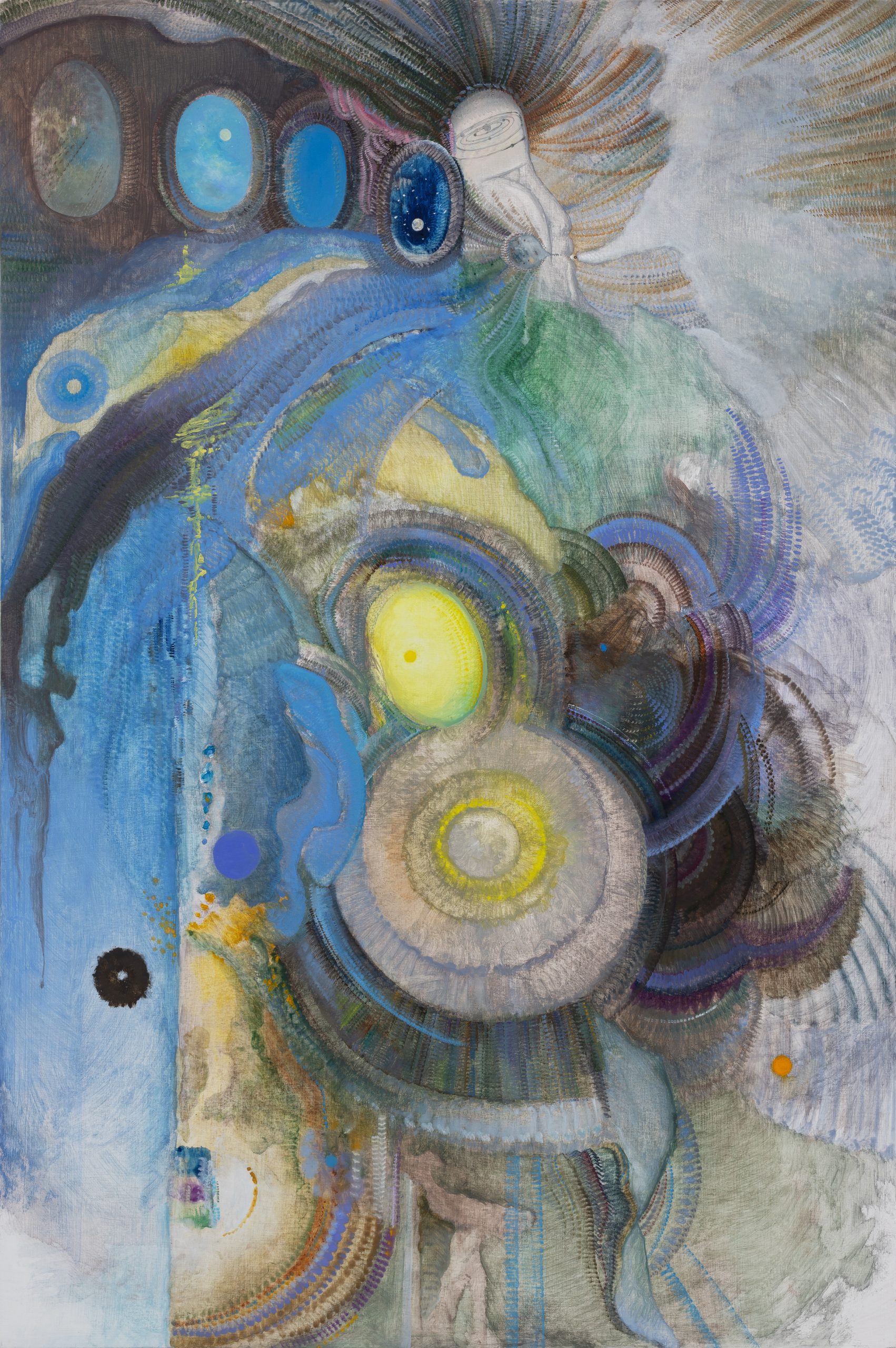 Yang Xinyi (b.1998) received her BFA from the School of the Art Institute of Chicago in 2020 and her MA in Painting from the Royal College of Art in 2023. Yang Xinyi sees painting as a medium that leads to inner reality. She uses light colours to depict soft lines, leaving traces of her spiritual exploration on the canvas. Her works focus on the subtle changes in the natural environment, reflecting the psychological impact of nature. Her recent and upcoming exhibitions include Sensory Sonnet, Hive Contemporary of Art, Shanghai (2024); Attractive, Tamashin RISURU Hall, Tachikawa City (2024); Nostalgic Eye, A/W Space, Nanjing (2023); Mothism, SEAGER Gallery, London (2023); Whispered Canvases: Part One, Silian Gallery, London (2023); Polyphonic, Crypt Gallery, London (2023); Backstroke,Batsford Gallery, London (2023).