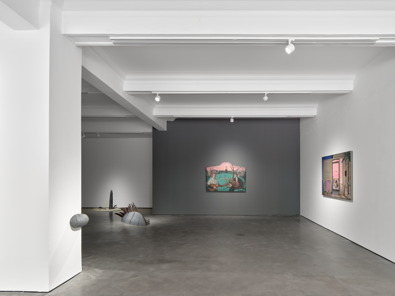 The works in this exhibition respond precisely to those moments when syntax fails: from still images in which structure has yet to take effect, to the nameless expansion of peripheral others, and finally to subtle divergences unfolding within language itself. Xiong Wei’s sculptural works present a range of non-native species—relocated by human hands, accompanied by economic expectations, yet indifferent to local rules. They grow, cross boundaries, and generate their own orders. Crayfish, tilapia, apple snails, and bamboo—these heterogenous life forms penetrate established contexts and build fleeting zones of prosperity beyond grammar, until rule-bearing agents arrive to impose structure and limits. Zhang Jialei composes unruly gardens through the rhythm of her own gestures. In her images, symbols break away from the score of structure, as if exploring an alternative syntax within sentences not yet pinned down by punctuation. She does not reject order; rather, she constructs a membrane of her own, through which an inner tempo begins to unfold. In Wu Haifeng’s paintings, time seems suspended and space hollowed out—people and objects float like words adrift in an atmosphere yet to be grasped. The three musicians appear isolated, yet resonate: immersed in their own sonic worlds, they remain silent toward one another, but share a quiet synchronicity through fluid perception. Here, relation does not depend on predetermined structure—it arises naturally, within air not yet settled. SHUM Kwan Yi’s “caves” form another domain of grace: landscapes become self-contained reflections of psychological states. The shifting scenery between cave openings signals the drift of consciousness; in her paintings, she constructs a semi-sealed, semantically charged system—a self-authored grammar that momentarily fends off the incursion of structure.