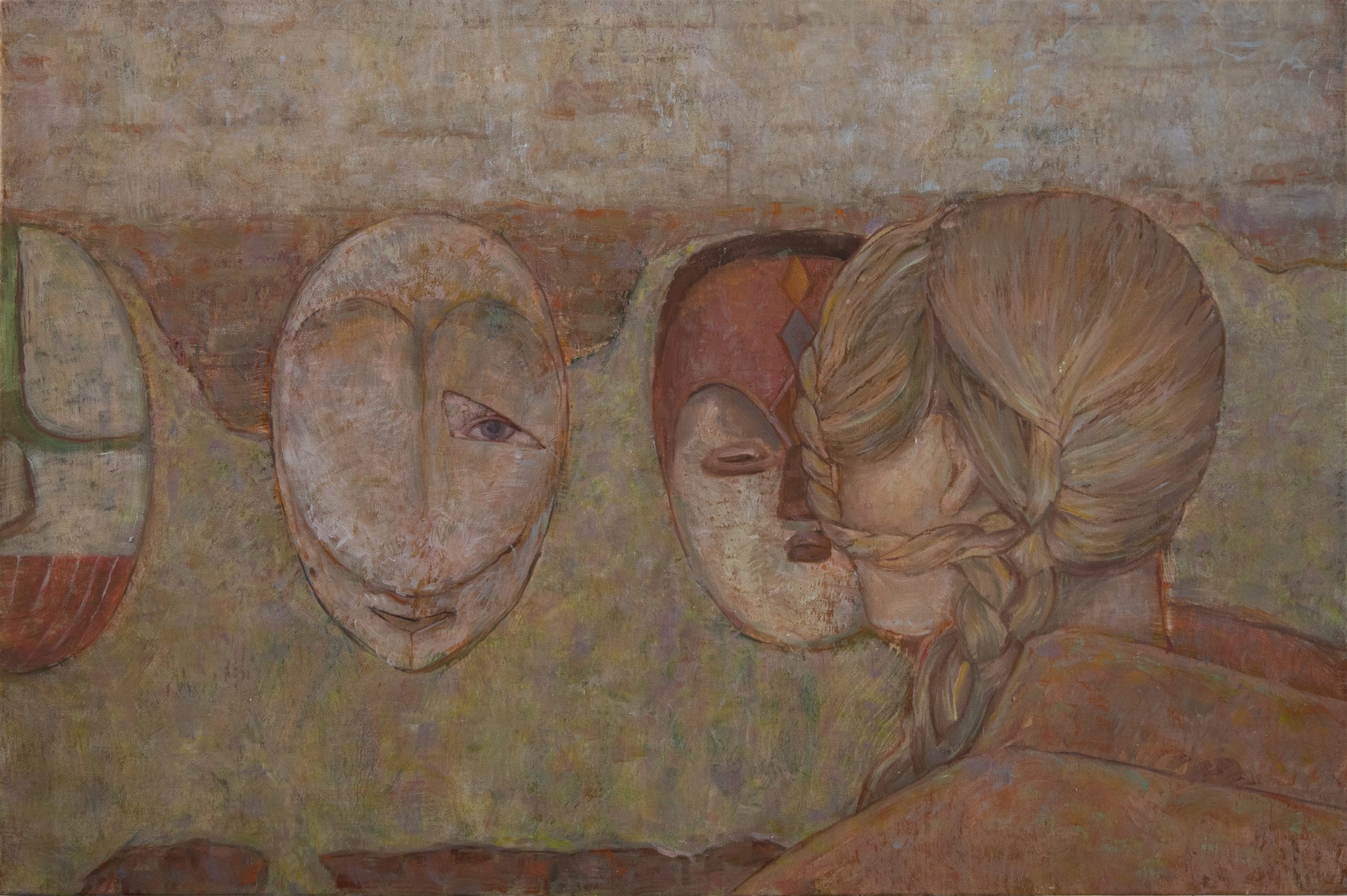 Following a trail of animal footprints extending along the wall, visitors enter the second-floor space, where Meng Qingjun’s Stare and Yuan Haiyu’s Insight form an implicit exchange of gazes. Both works feature similar square structures and eye-like focal points, as if they were looking at each other across the space. Standing between them, viewers may sense a subtle tension, as though time were briefly suspended—accompanied by the faint unease of being watched by an unknown gaze. Beside Stare, Meng Qingjun’s Squint continues the artist’s signature “face-script”, faces in a calligraphy-like, mimetic form: as the act of staring grows tired, the gaze seems to narrow and soften, suggesting a brief moment of rest. Yuan Haiyu’s works Hinge and Face and Mask further shift this dynamic of looking toward the instability of self-recognition. If a face only truly exists in the moment it meets another’s gaze, the individual is continually reconstructing their own image between being seen by others and looking at themselves.
