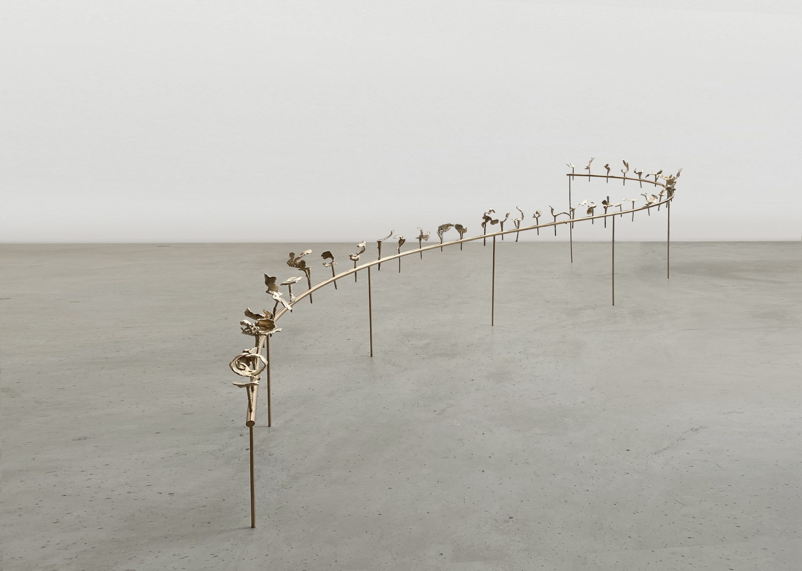 Wang Wenting’s practice has long revealed a pronounced sense of artistic agency. From the abundance of material motifs she absorbed in museums during her early years, to the metal forms generated through contemporary technologies, she persistently explores the imaginative boundaries that can be extended from material foundations. In Mastering Fire, she constructs a multidimensional space through painting, works on paper, and metal sculpture—each unfolding around the central motif of fire. The artist was born in the heartland of the Yangshao and Erlitou cultures, where fire once shaped the forms of pottery, metallurgy, and early civilization; her childhood was equally embedded in the micro–environment of a foundry, a site defined by heat, metal, and modern machinery.