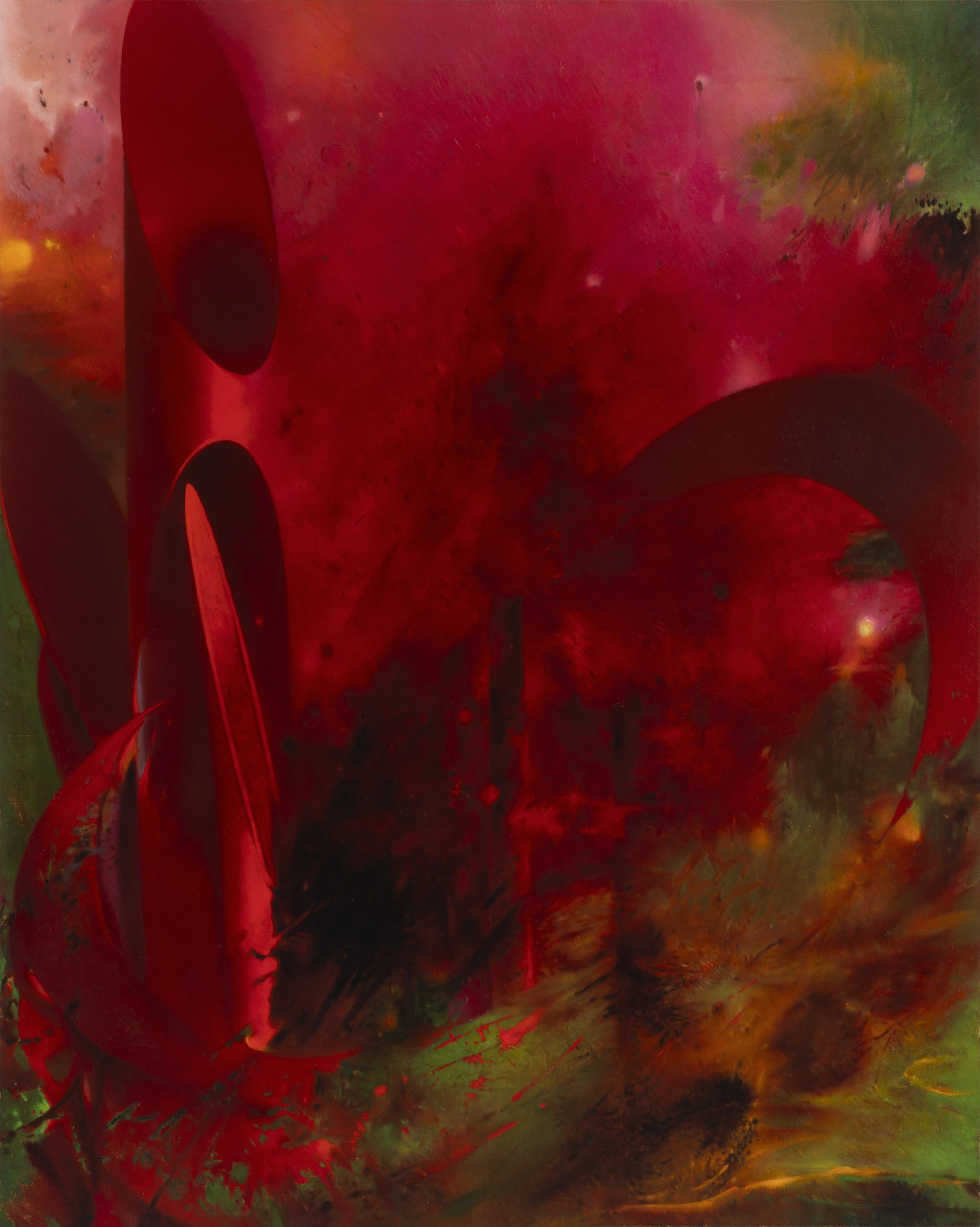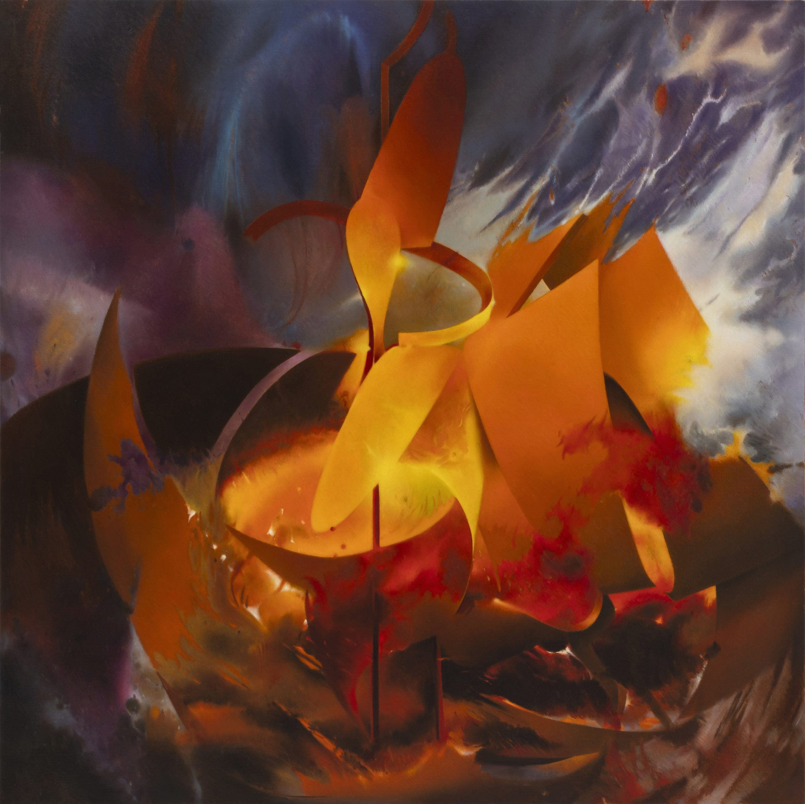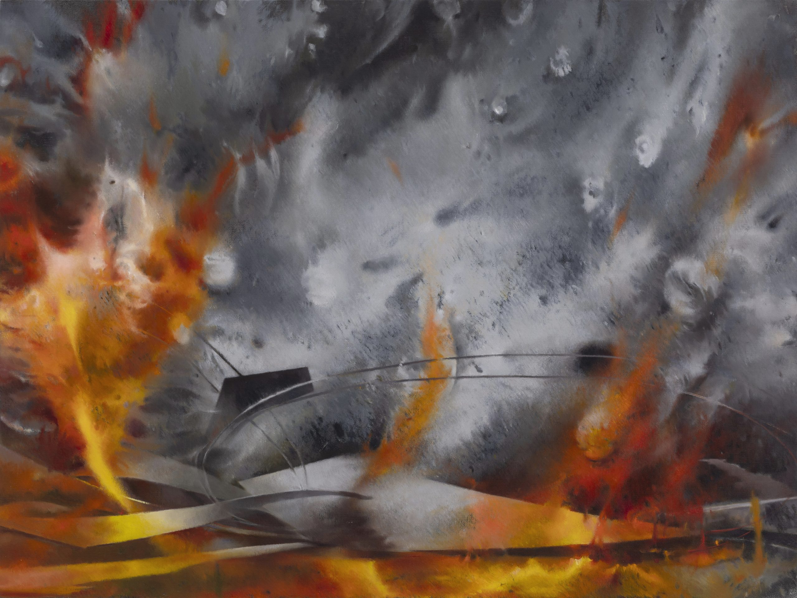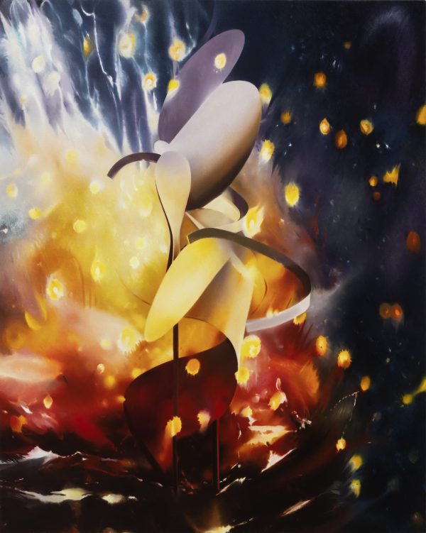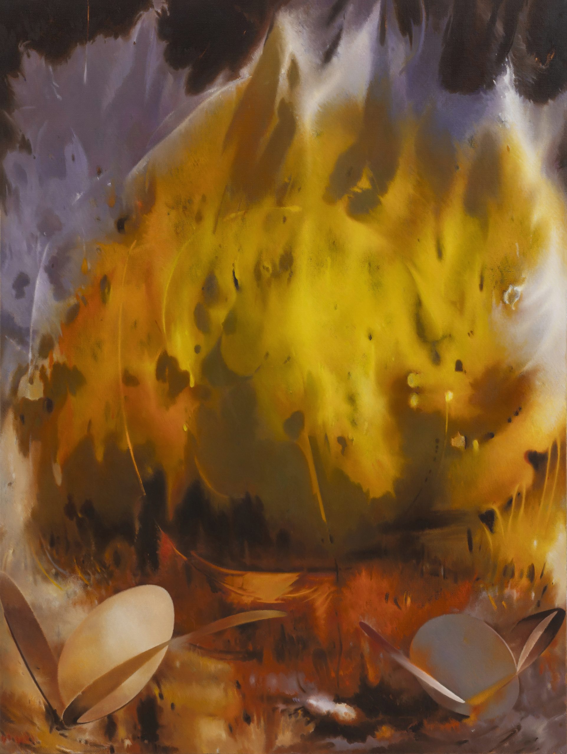 The exhibition constructs a dynamic narrative of fire through three distinct media. Large-scale paintings generate cascading fire curtains through surging brushwork and layered color, releasing visual apparitions charged with Romantic intensity; works on paper offer a more restrained reflection on the morphological lineage of human-made objects; while monochromatic metal works drift between the two, revealing the sensory scale between the “fire tamer” and matter. Together, the three media pull against and respond to each other within the exhibition space. The tension between exuberant color and the murmurs of materiality reveals how fire propels the artist to recalibrate the internal rhythm of her life. Within this ongoing rite of rekindling, Wang Wenting redraws the boundary between subject and world, making fire an entryway into expanded perception and imagination.