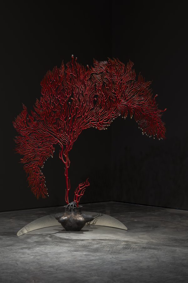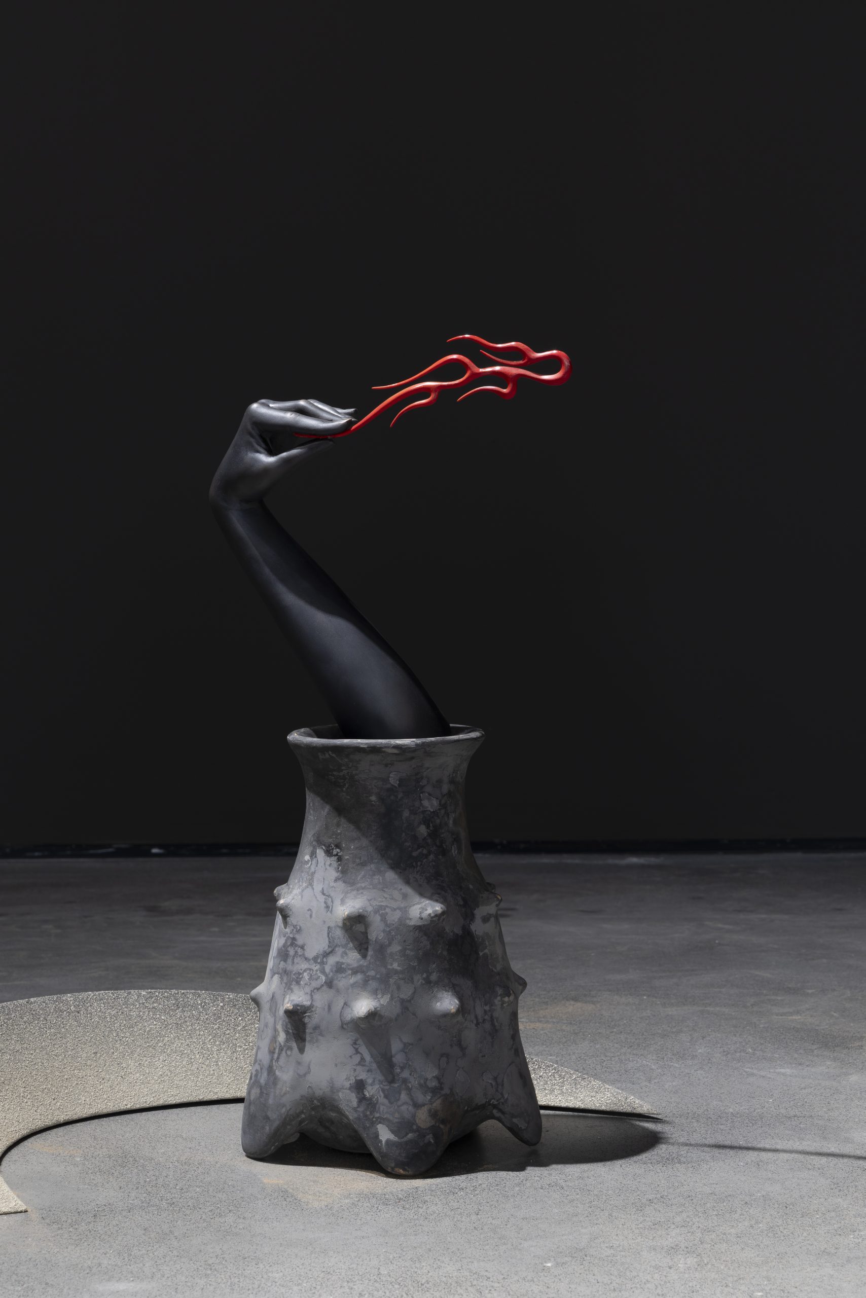 The stars of the cosmos collapse into sparks of fire, reviving within the colossal shell of a snail, then quietly nestled within the vessel of human civilization. In the span of an instant, the fire is grasped and emerges in hands, its essence transforming into a tree, vibrant and monumental. The tree regenerates its branches into the shape of hands yet again, interlocking like ouroboros, where new life merges with decay, and creation verges on annihilation.