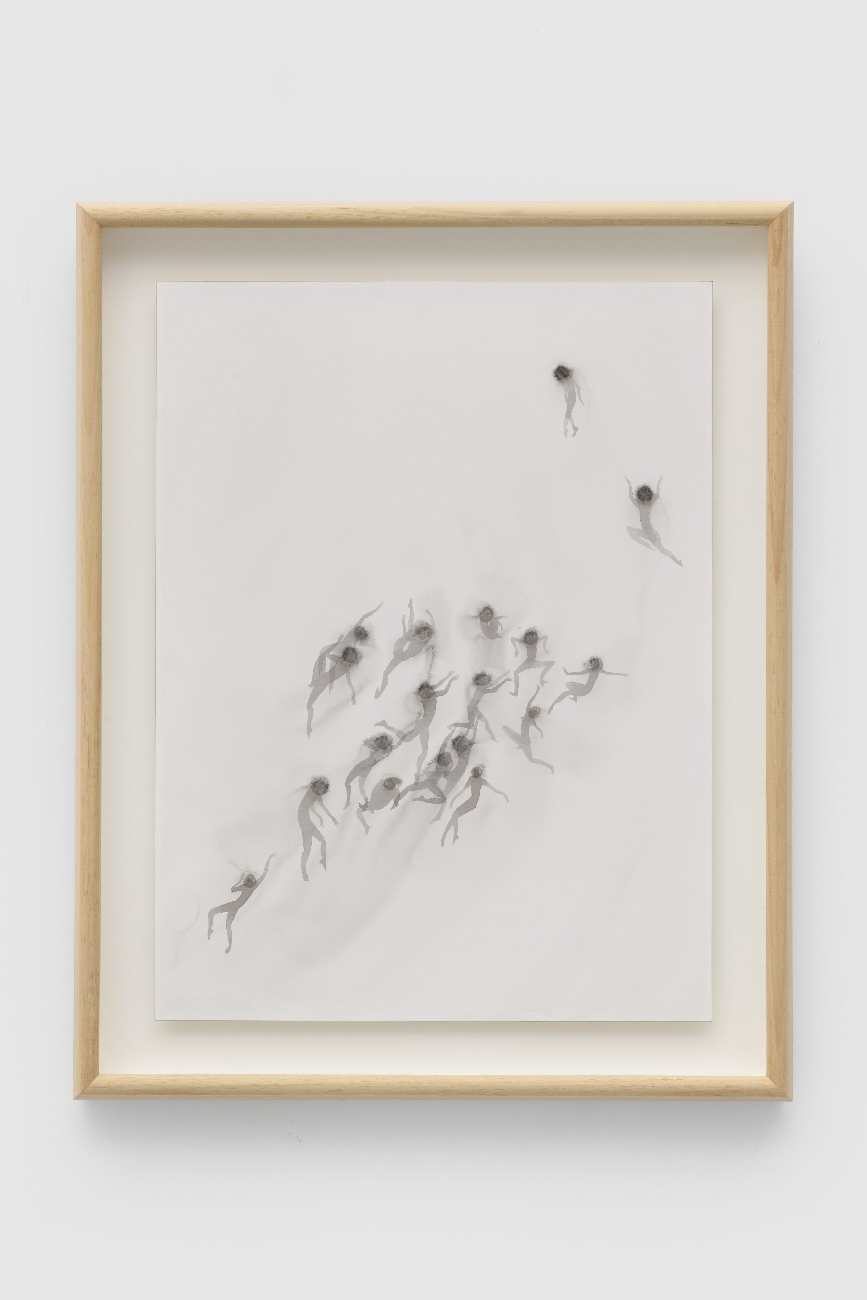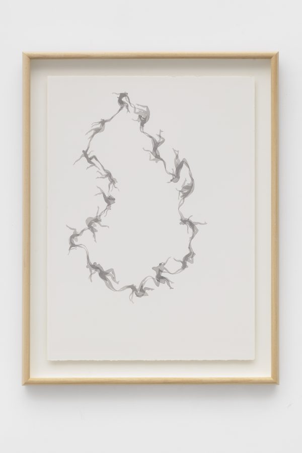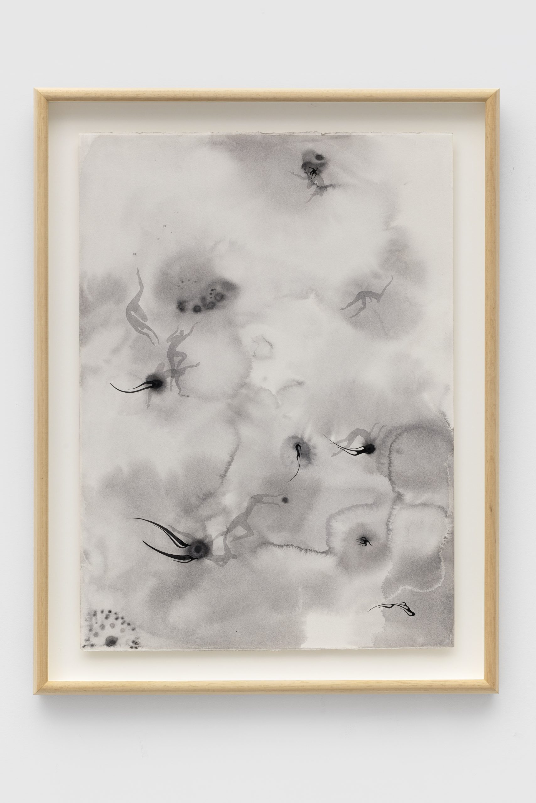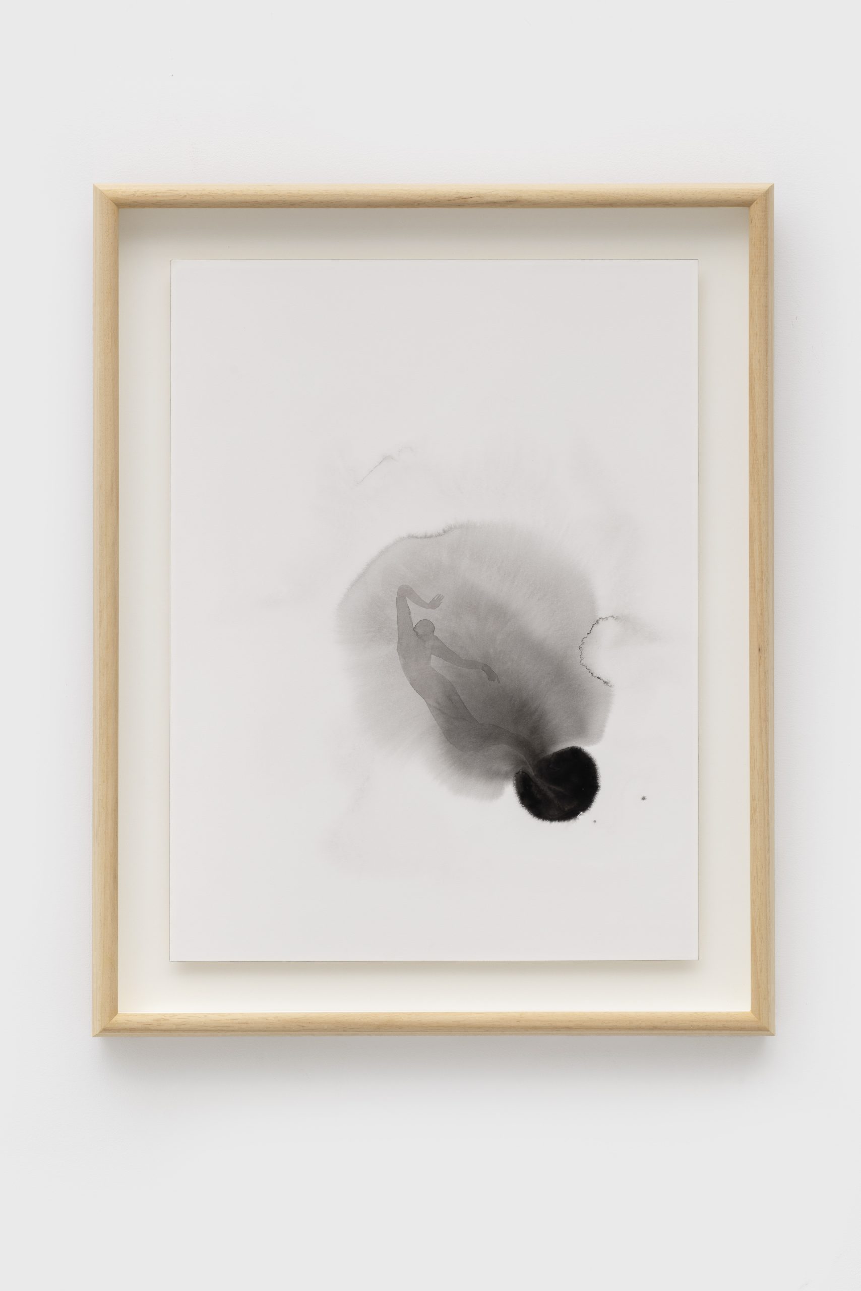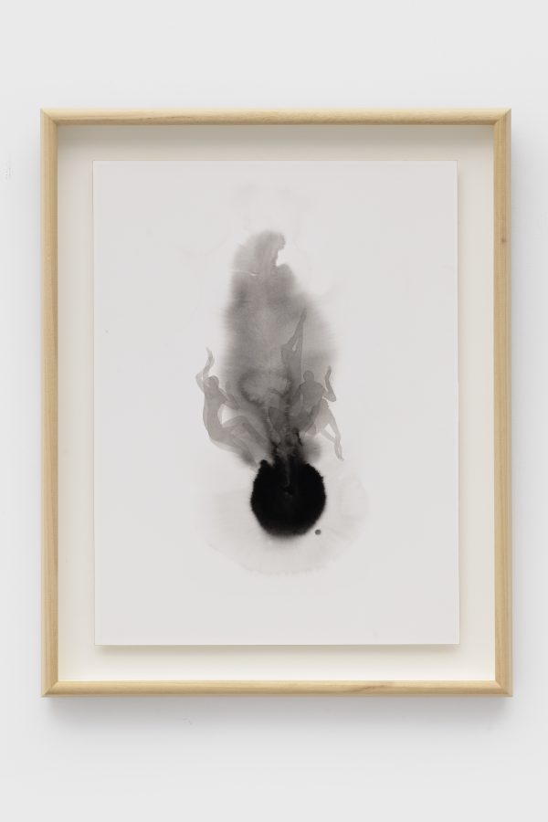 Simultaneously, the human figures move and dance across blank pages, coalescing and dispersing within the symbiosis of ink and water, subtly mirroring the rhythm of life’s inception. Dance forms the very axis of Meng Zhou’s work, as the motion of these shadows expands outward, overflowing the borders of the frame, perpetually seeking resonance with all beings and the universe. From ancient spiritual rites to contemporary humanistic theater, in which the body now inscribes emotions and states of being, the expansive history of dance is embraced within Meng Zhou’s human silhouettes. In the flicker of firelight and the undulation of water, it commemorates the ephemeral nature of human existence, while underscoring the perpetual coexistence between humanity and all life.
