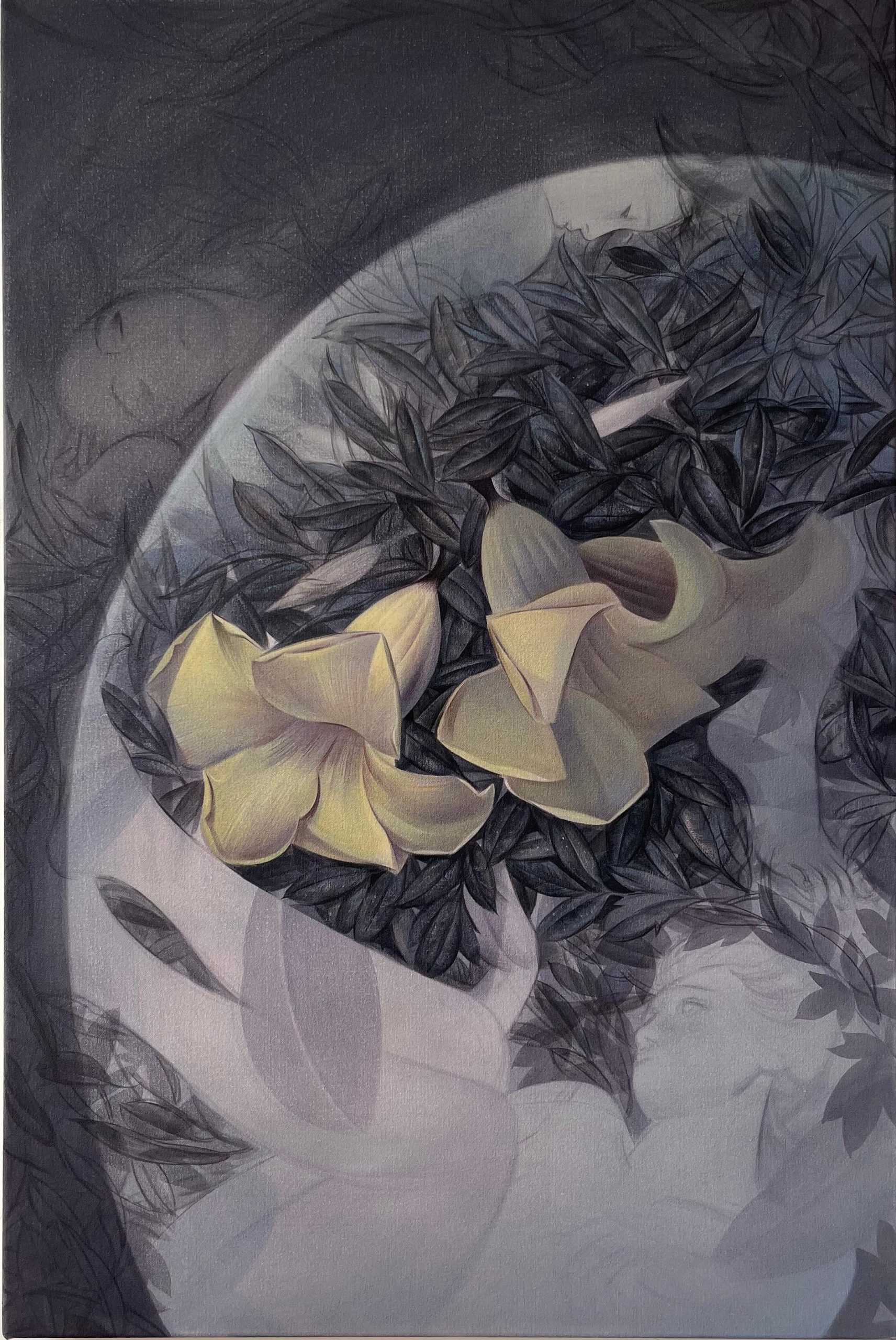 裴彦清,1991年生于佛山,现工作及生活于美国纽约,2014年与2017年于中国美术学院分别获得学士与硕士学位,并于2021年获得美国纽约普瑞特艺术学院艺术硕士学位。裴彦清以万物作为一个整体,同时又独立地与其他事物相联系的理念进行绘画创作。她的实践关注自然,探索人类与周遭的亲密共生关系,以及对由中国表意文字构成的叙事语境中诗意空间的想象。裴的绘画语言以混沌却和谐的方式建立人与人之间,人与周遭之间的对话。