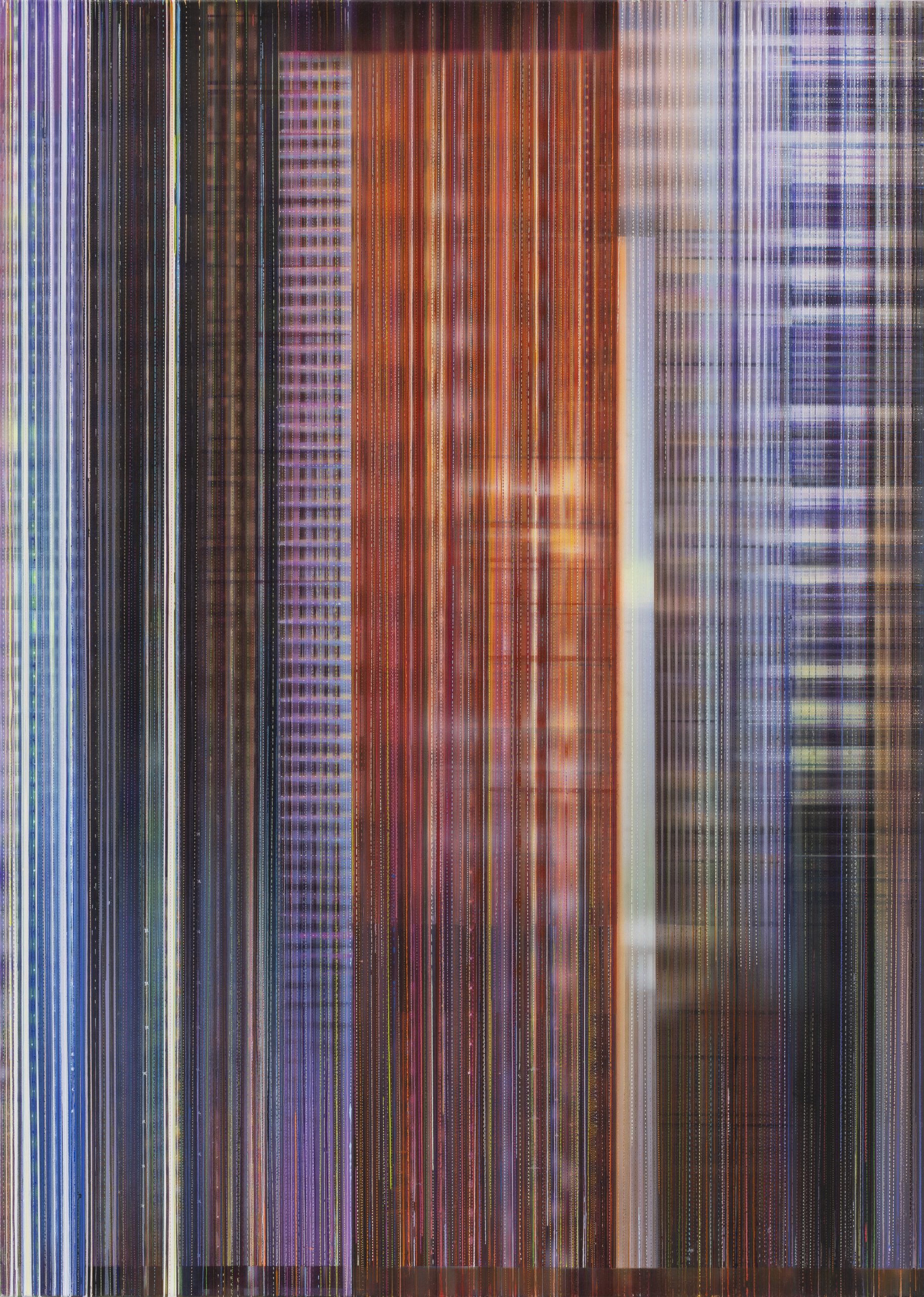 从某种意义上说,刘璐的创作路径和方法论带有某种行动绘画的气息。显然,她的行动并不像抽象大师波洛克那么即兴挥洒,与之相反,她的每一条线条、每一块色彩,都经过精心计算和安排,其中姑且不论处理照片的流程。她的每一件作品的完成都需要异常漫长的时间。貌似重复的动作,实则是把生命和情绪,以精细的笔触不断叠加在画面上。她笔下的光并不是说有光就有光,而是一种自内而外缓慢释放出来的情绪和能量,也许还掺杂着某种令人肃然起敬的固执。她的作品可以说是抽象的,也可以说是具象的。抽象的依据是因为她描摹的对象光线具有抽象性,而具象的理由,恰恰是她精准地表现了光线千变万化的复杂性。