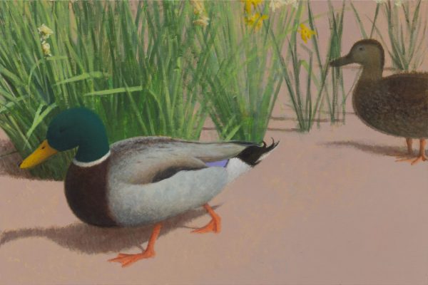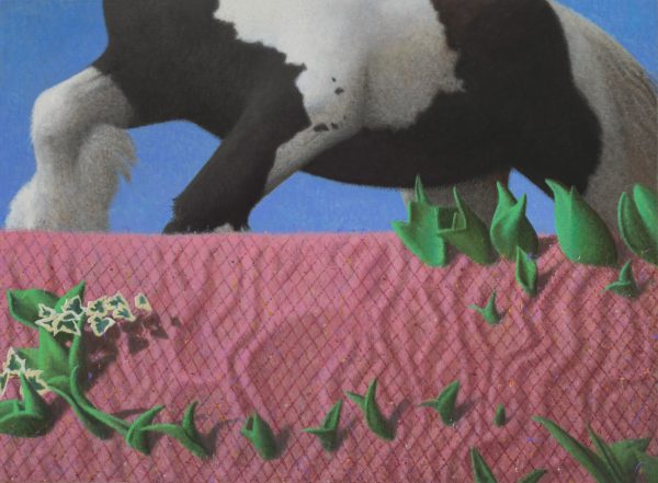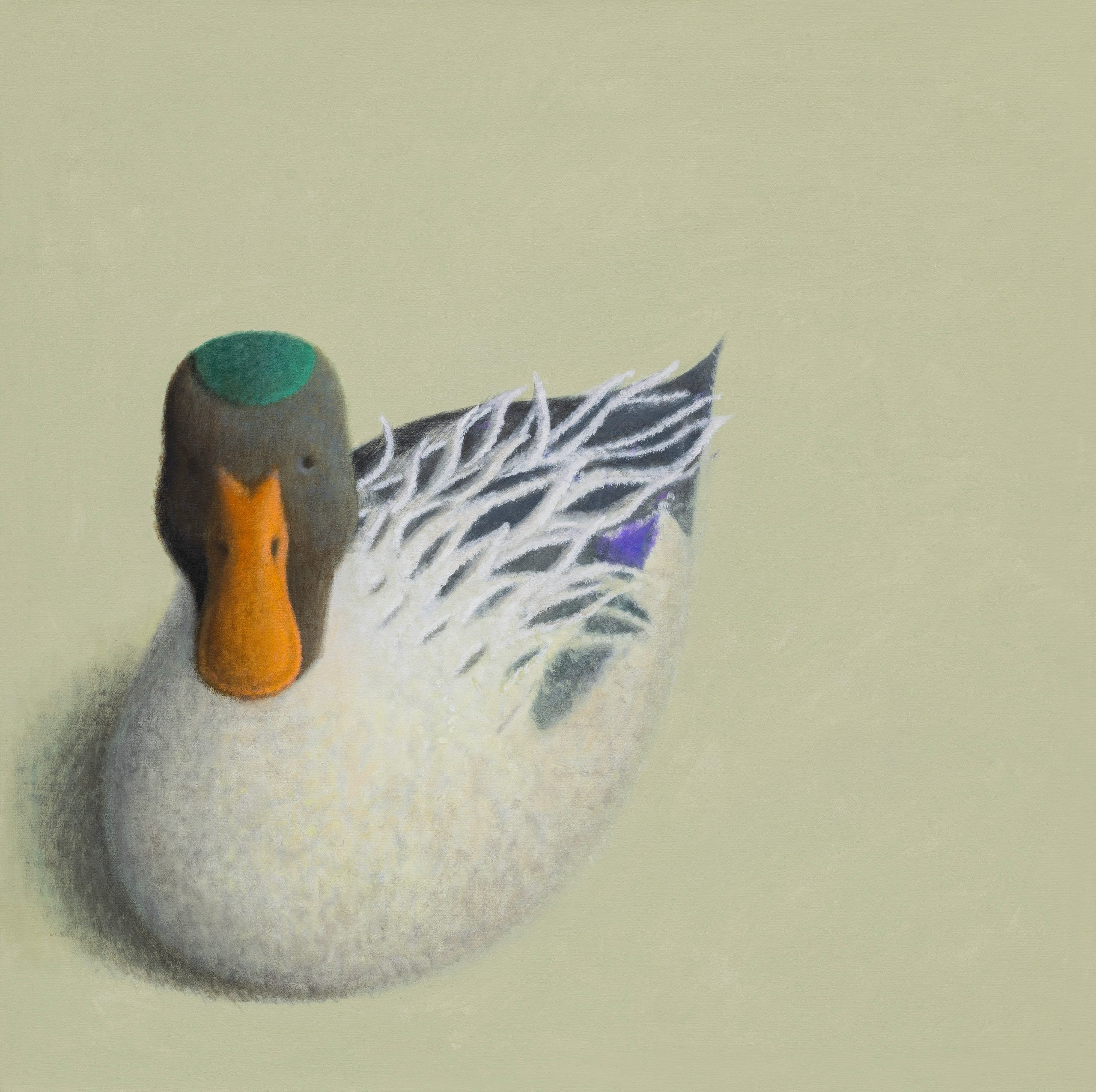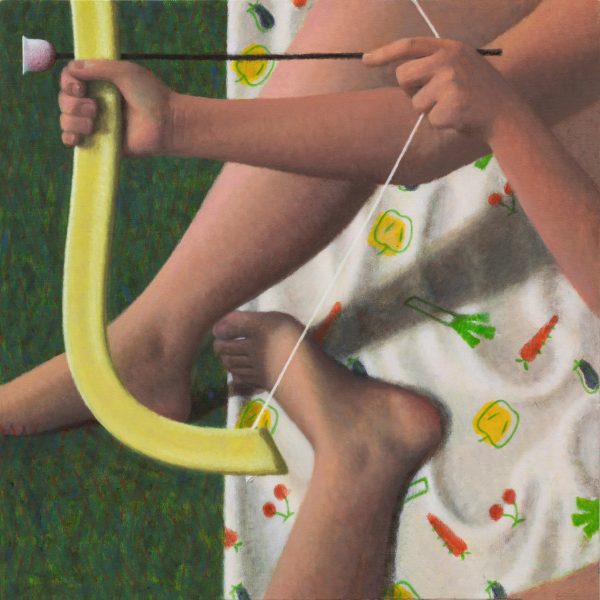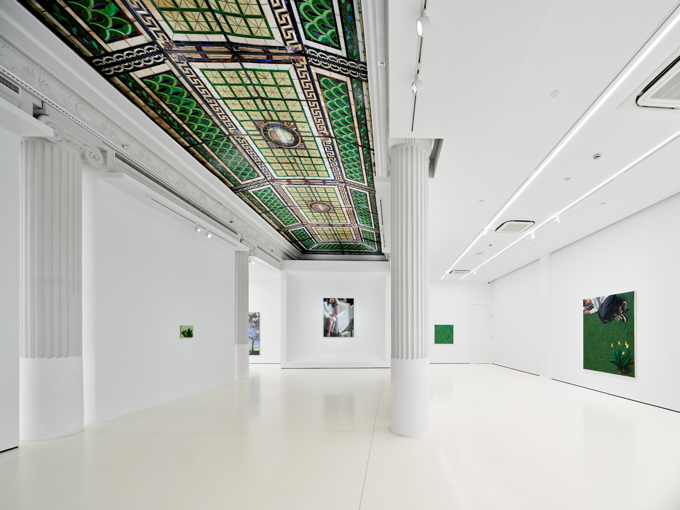卢豫的绘画并不满足于单一的象征或线性叙事,通过对多重图像的拆解、错位与重组,营造一种审美上的悬置,使观者在不确定与多义的间隙反复游弋。她以女性艺术家的共感思维和敏锐视角重新介入艺术史中的若干母题,消解既定的符号秩序,释放高浓度的情感能量。如果说艺术家于2024年创作的“Europa”引发了新作中的叙事转折,将主角从传统叙事的被动身份中抽离,转而强调动物性的温顺与神性的魅惑。那么与“大浴女”母题关联的俯卧天使,有意削弱对面目的凝视,使观看机制发生本质位移。而孔雀与男性形象的并置,则与艺术史中惯常的“女性与鹦鹉”所指向的欲望意涵形成鲜明反照。借由“草地上的午餐”这一题材,卢豫不再诉诸外部指涉,而是将叙事内化为对日常生活的自足体认,从而打破了传统图像叙事的惯例与既有的观看模式。
